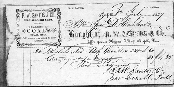 We've collected several hundred billheads, letterheads, and other printed material from the 19th century, pertaining to Norfolk, Virginia. Here are just a few. There are many more to come!