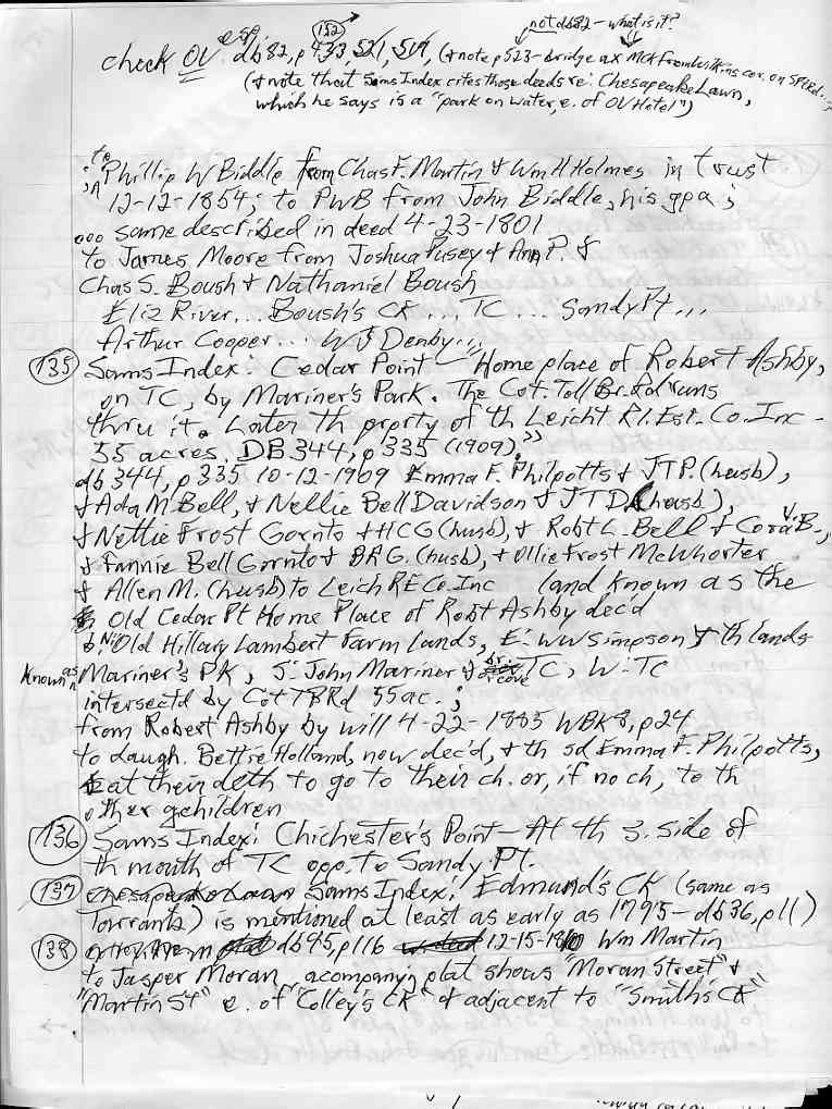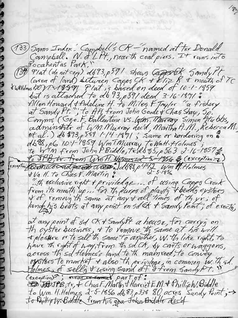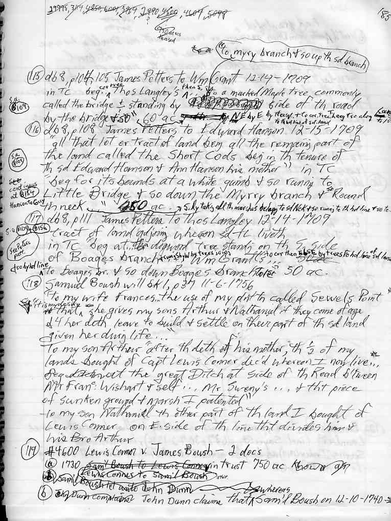 Notebook "A," items: 1-28 | 29-35 | 36-57 | 58-87 | 88-114 | 115-142 | 144-170 | 171-184 • Notebook "B," items: 5-83 | 84-139 | 140-211 • Loose Papers, pages: 1-13 | 14-28 • (see also Princess Anne Co. deed abstracts) Several pages are displayed below. Scroll down to see them all. Notebook A, Items #115 to #119 ![]() Notebook A, Items #119 (cont'd) to #122 ![]() Notebook A, Item #119 (cont'd) (#119 to #122 are on previous page) ![]() Notebook A, Items #123 to #127 ![]() Notebook A, Items #127 (cont'd) to #132 ![]() Notebook A, Items #133 to #134 ![]() Notebook A, Items #134 (cont'd) to #138 ![]() Notebook A, Items #140 to #142 ![]() For more deed abstracts, select from the following: